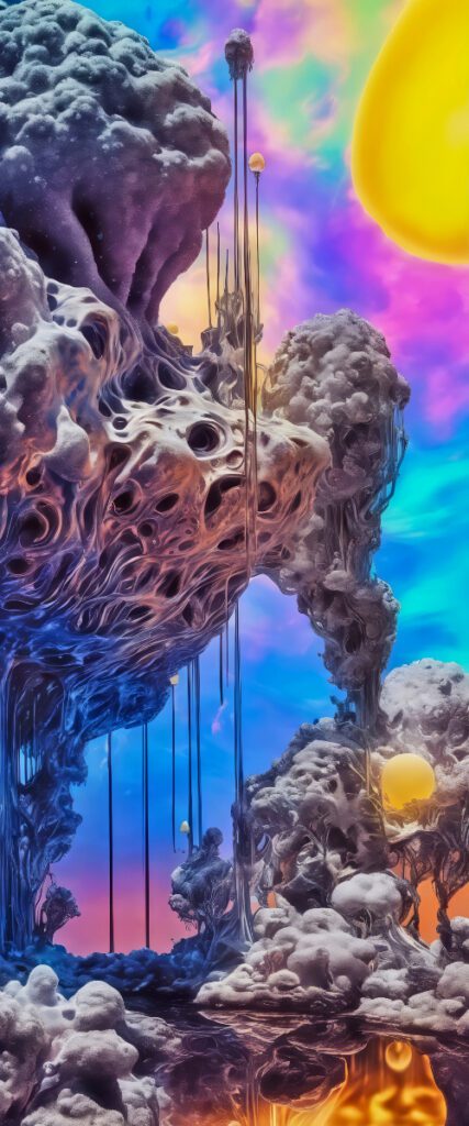 Even in artworks where a fractal couldn’t be used or was intentionally omitted, the artist unique signature is ever-present. Sometimes it subtly hints at fractal roots; other times, it boldly branches into entirely new visual territories. Each piece tells a unique story, embodying the synergy between the cosmos and conscious thought, inviting viewers to explore the infinite possibilities of creativity.