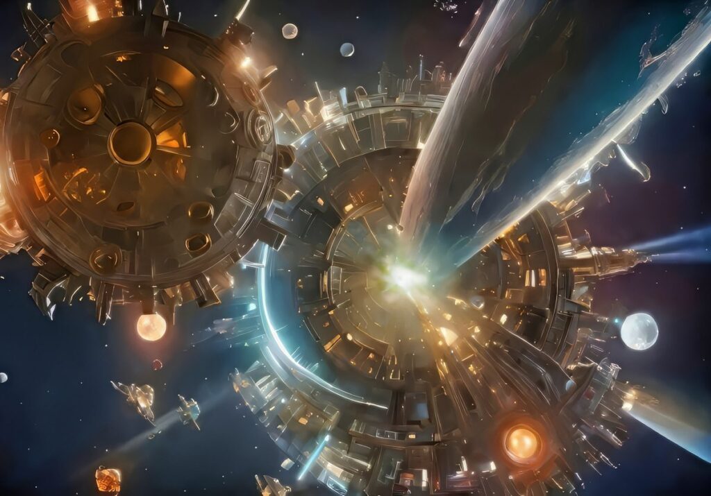 Born from the cataclysmic collapse of VoidVerse, NoOmBlack emerged as a cosmos redefined—a universe forged from chaos, captured in its entirety by the enigmatic Mega-Rotadron. This monumental device, acting as both a savior and architect, extracted the fractured threads of time-space and recalibrated them into the living essence of NoOmBlack. What was once lost in the void now thrives as a beacon of innovation and interconnected realms.